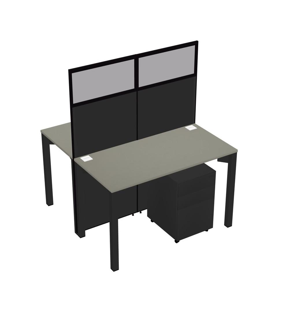 Grey Shadows Shared Rectangular Office Cubicle Panel System With Mobile Drawers For 2 Persons
