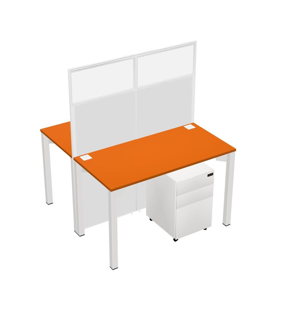 Orange Shared Rectangular Office Cubicle Panel System With Mobile Drawers For 2 Persons