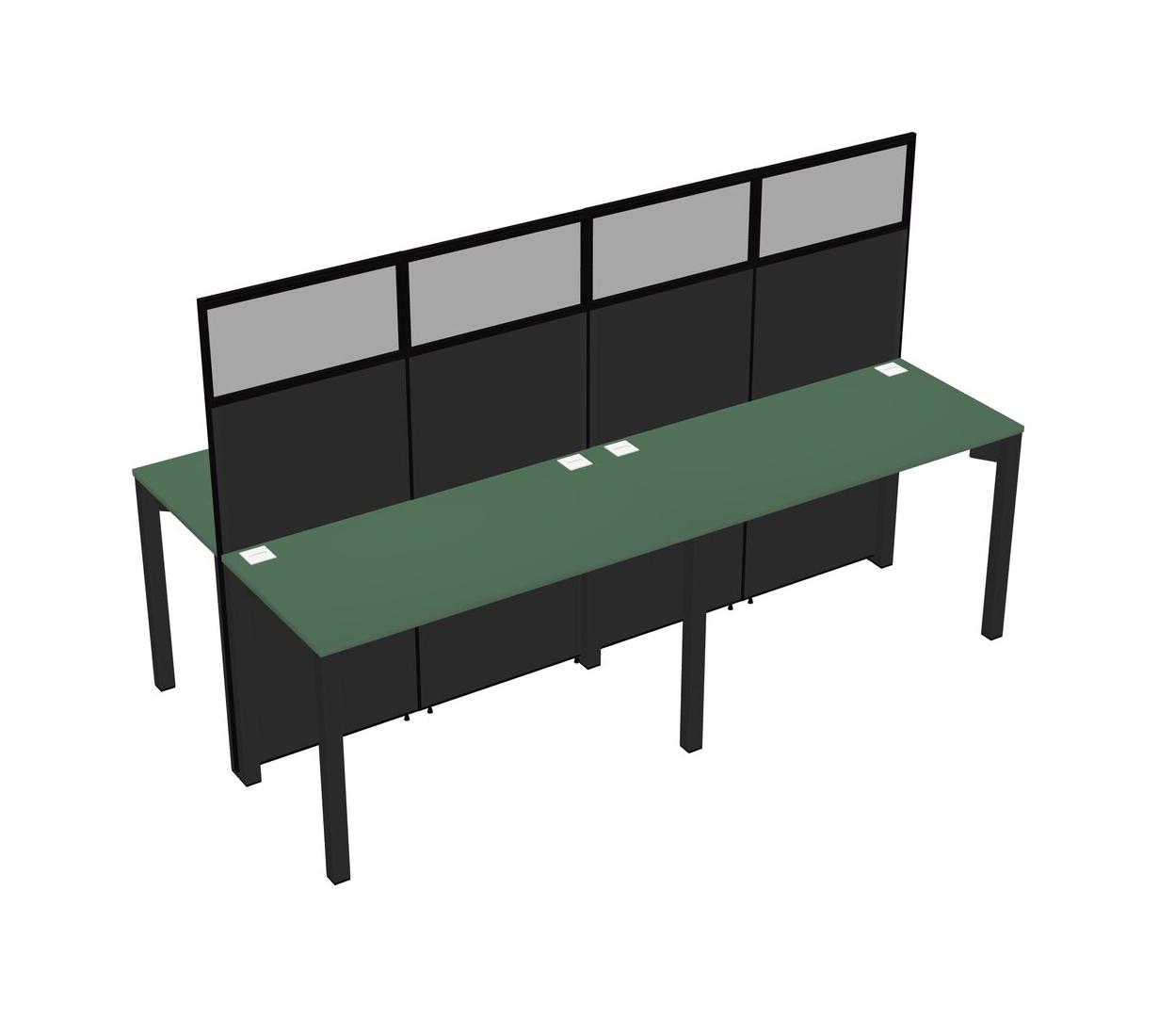 Green Shared Rectangular Office Cubicle Panel System For 4 Persons