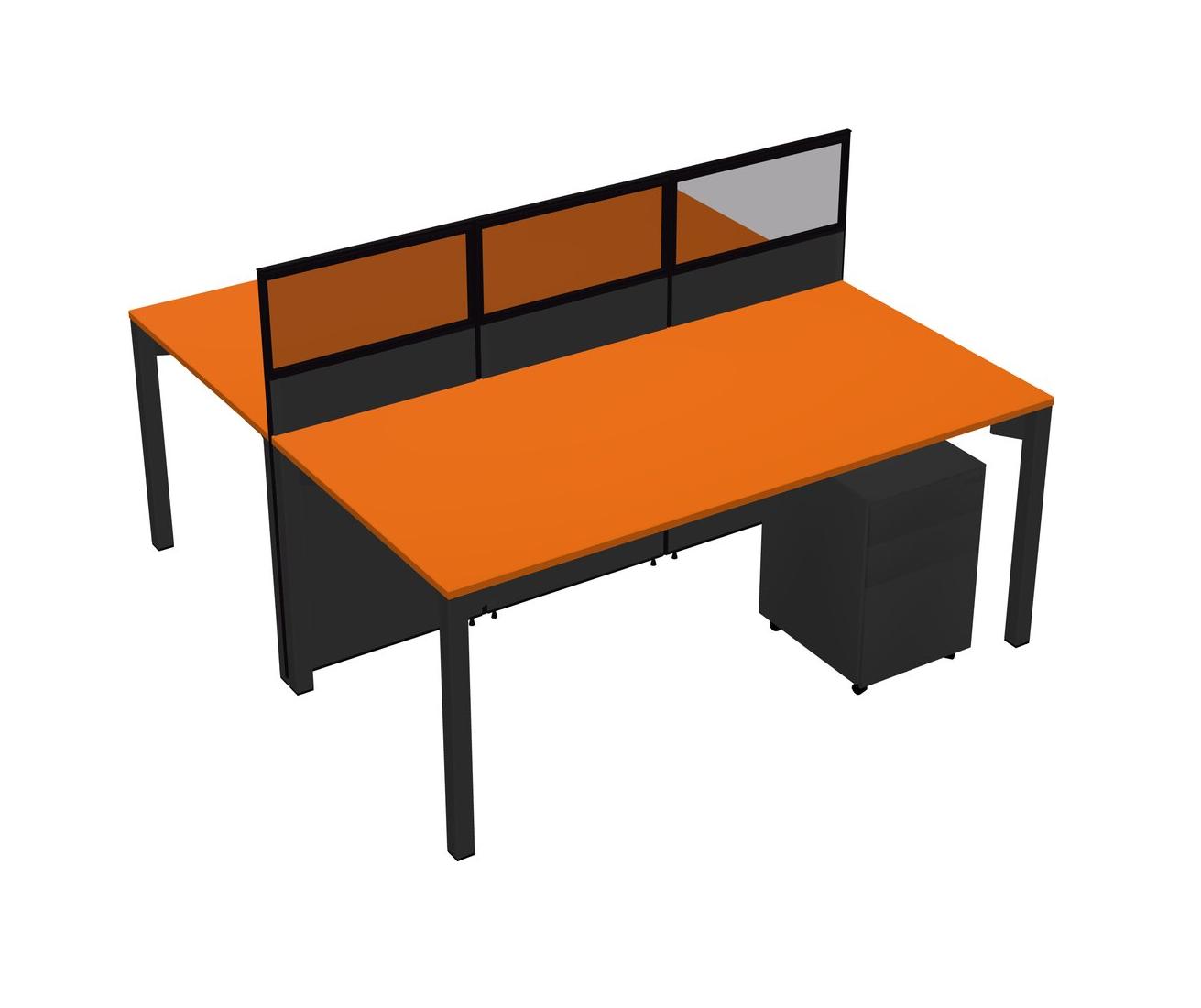 Orange Shared Rectangular Office Cubicle Panel System With Mobile Drawers For 2 Persons