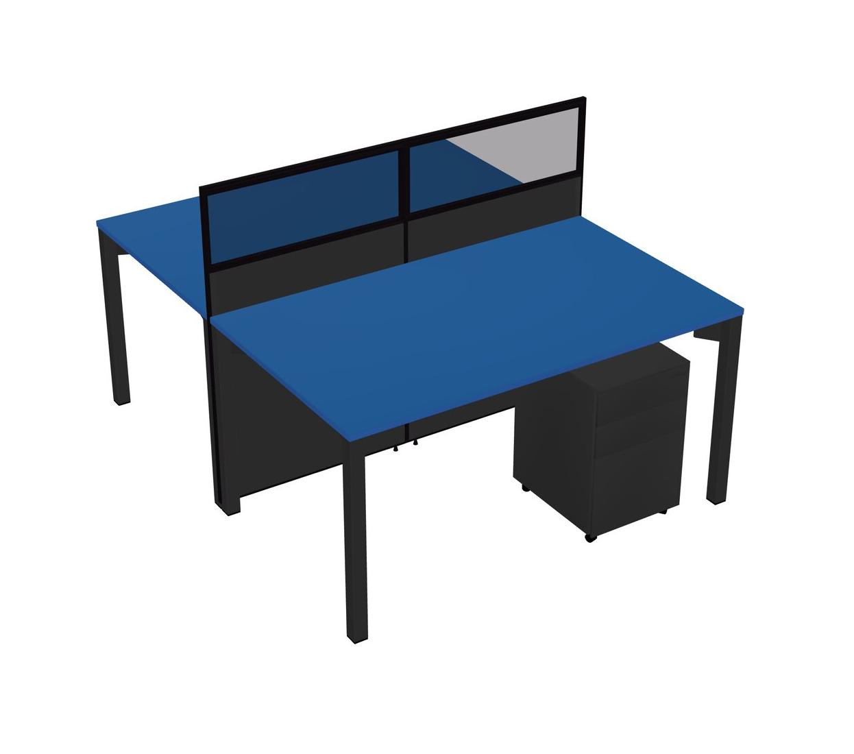 Prism Blue Shared Rectangular Office Cubicle Panel System With Mobile Drawers For 2 Persons