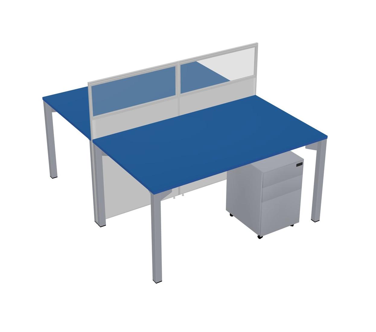 Prism Blue Shared Rectangular Office Cubicle Panel System With Mobile Drawers For 2 Persons