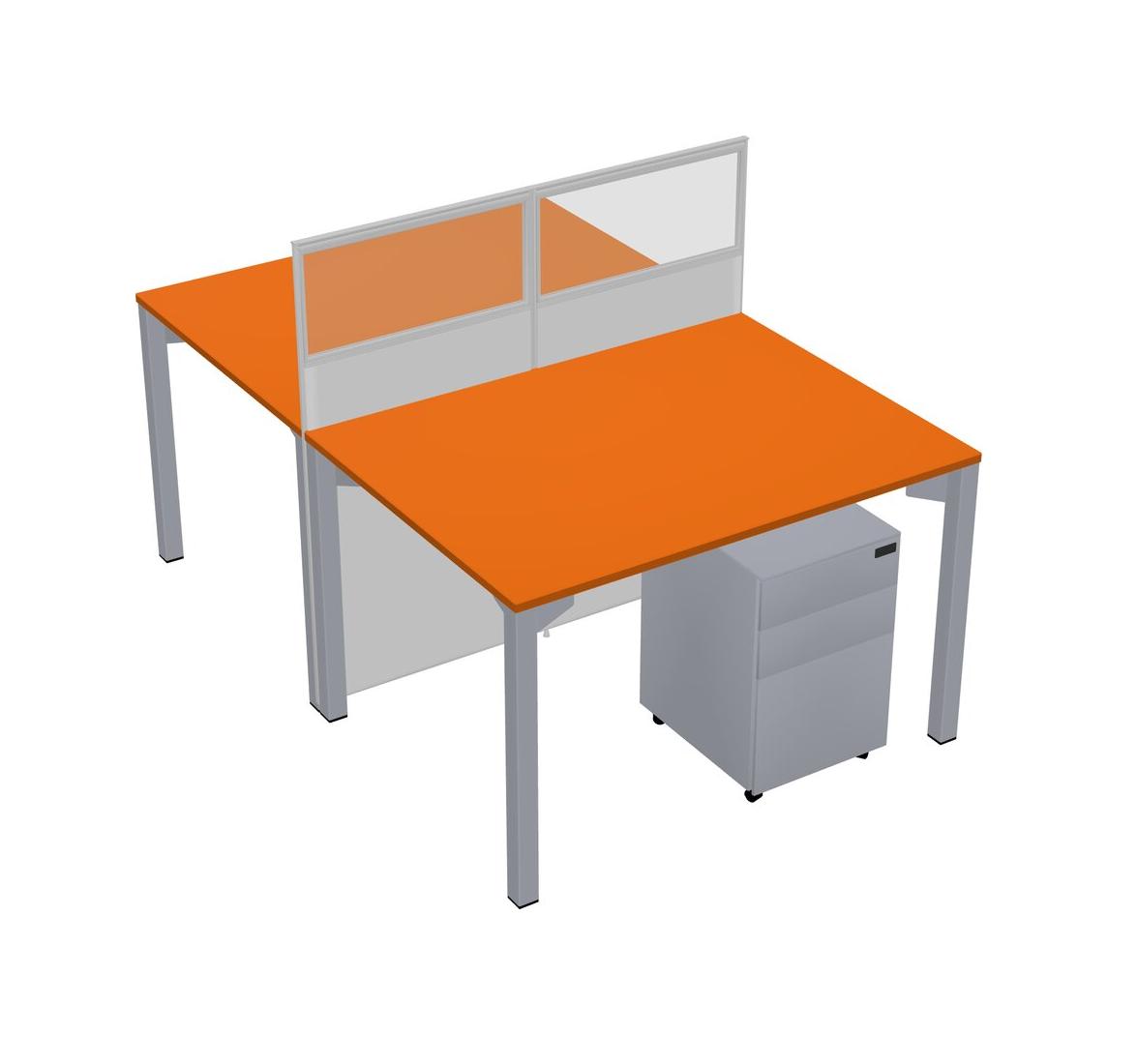 Orange Shared Rectangular Office Cubicle Panel System With Mobile Drawers For 2 Persons