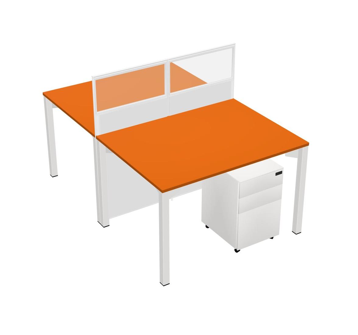 Orange Shared Rectangular Office Cubicle Panel System With Mobile Drawers For 2 Persons