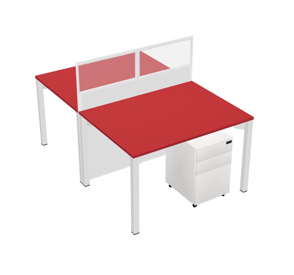 Prism Red Shared Rectangular Office Cubicle Panel System With Mobile Drawers For 2 Persons