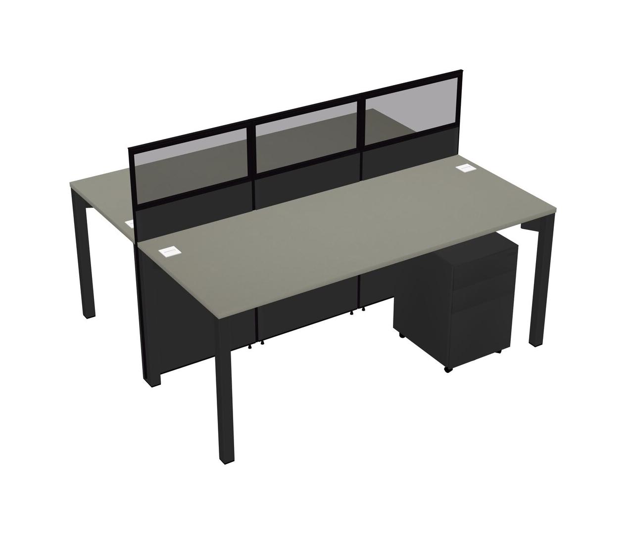 Grey Shadows Shared Rectangular Office Cubicle Panel System With Mobile Drawers For 2 Persons
