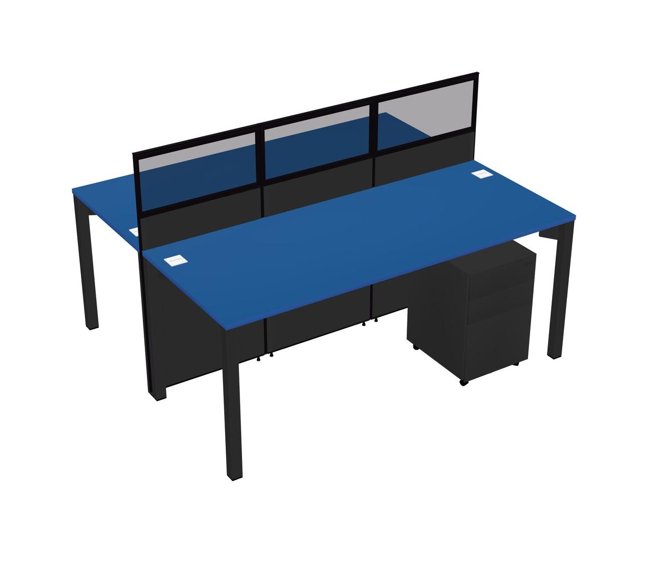 Prism Blue Shared Rectangular Office Cubicle Panel System With Mobile Drawers For 2 Persons
