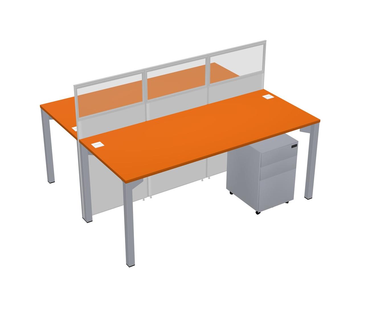 Orange Shared Rectangular Office Cubicle Panel System With Mobile Drawers For 2 Persons