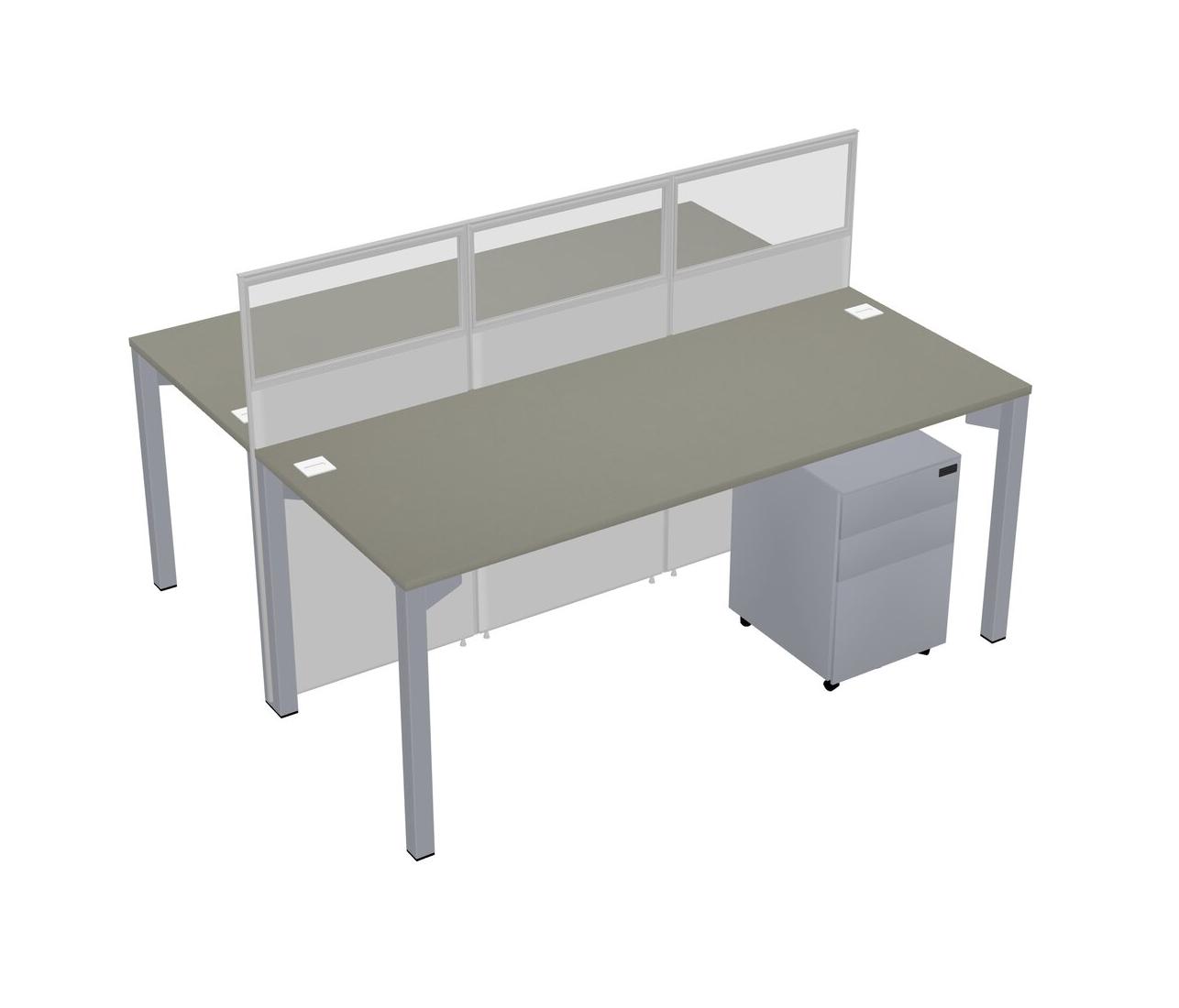Grey Shadows Shared Rectangular Office Cubicle Panel System With Mobile Drawers For 2 Persons