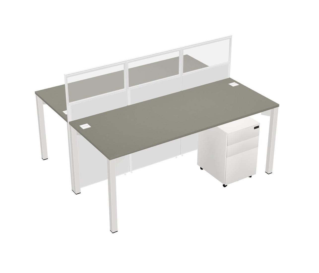 Grey Shadows Shared Rectangular Office Cubicle Panel System With Mobile Drawers For 2 Persons