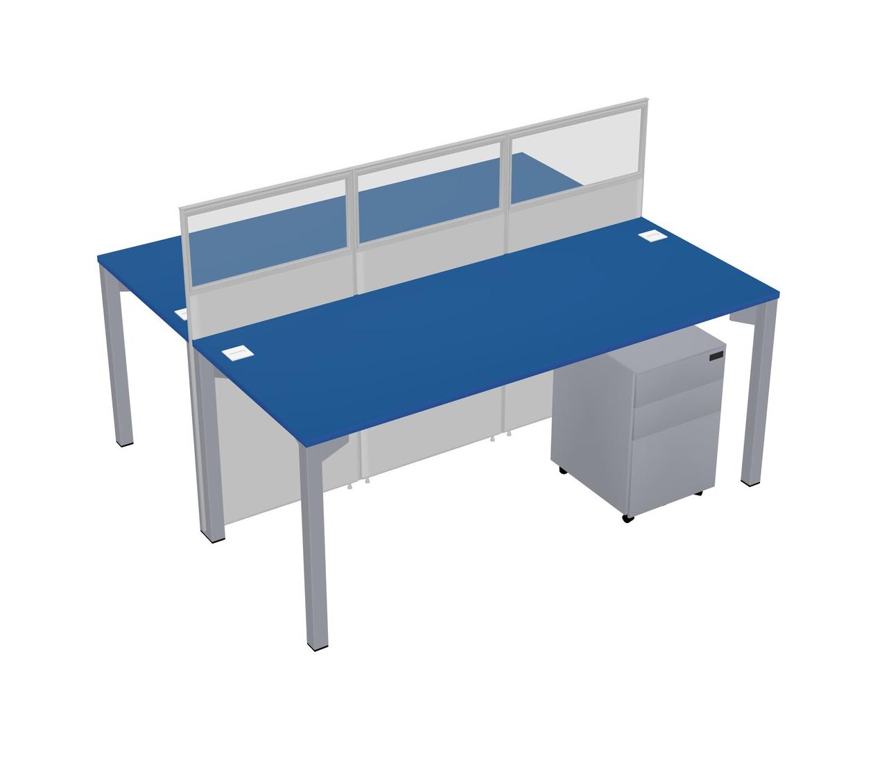 Prism Blue Shared Rectangular Office Cubicle Panel System With Mobile Drawers For 2 Persons
