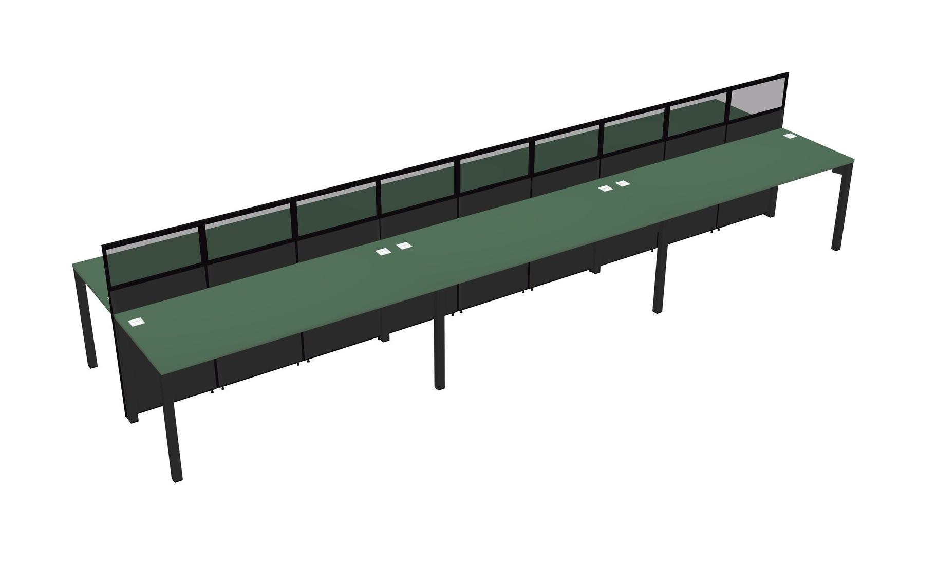 Green Shared Rectangular Office Cubicle Panel System For 6 Persons