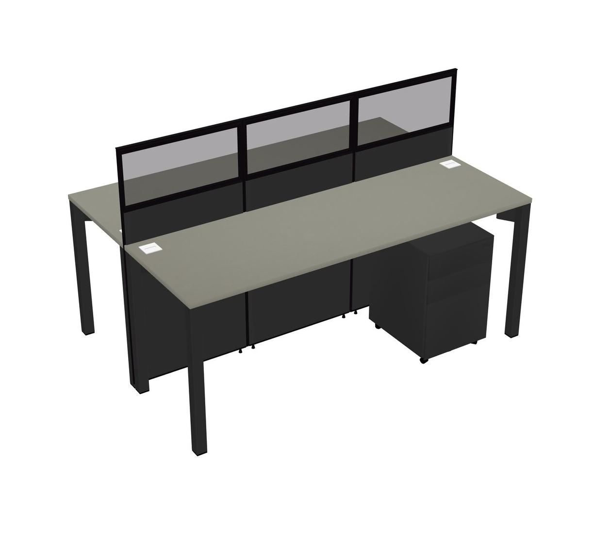 Grey Shadows Shared Rectangular Office Cubicle Panel System With Mobile Drawers For 2 Persons