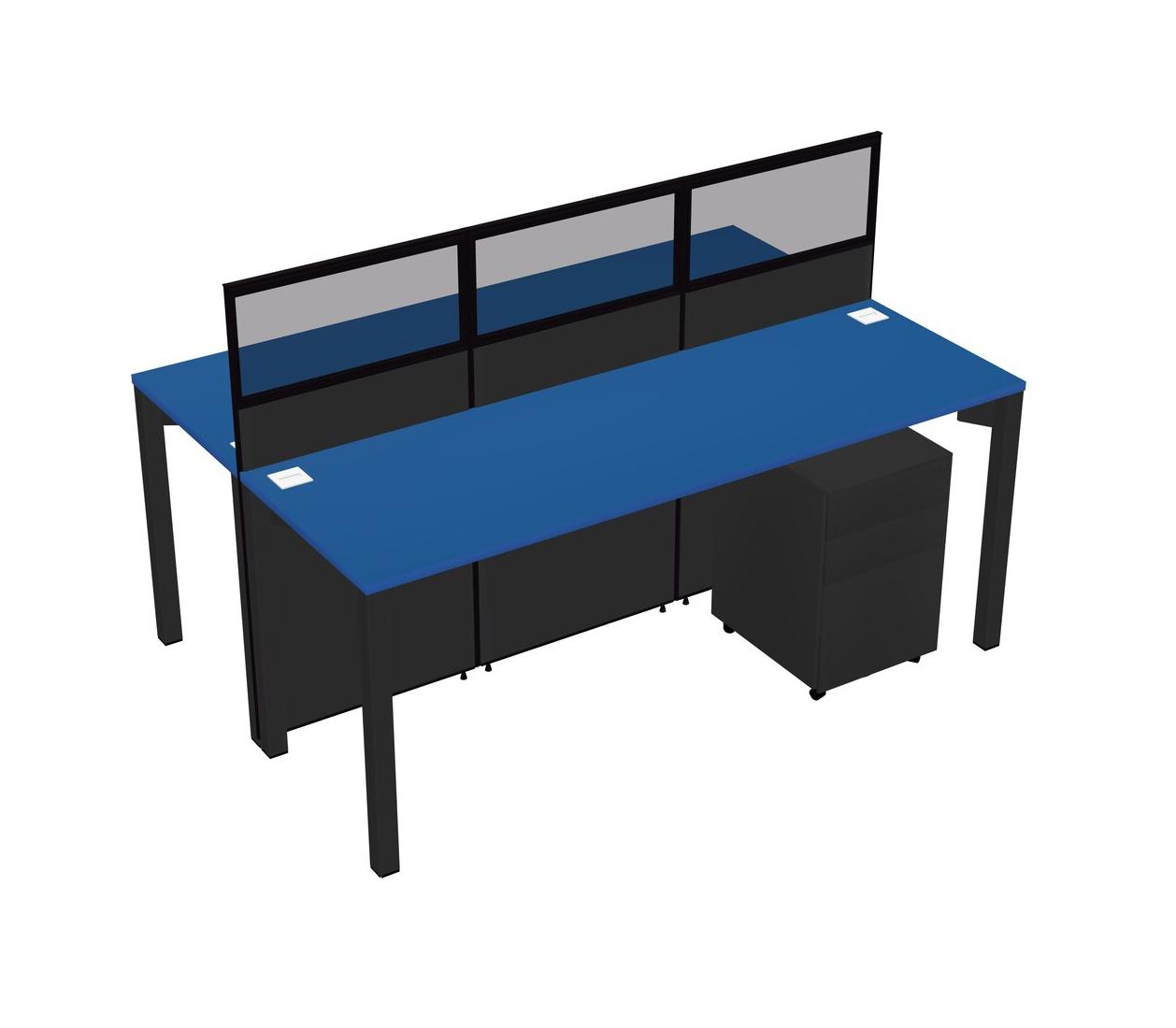 Prism Blue Shared Rectangular Office Cubicle Panel System With Mobile Drawers For 2 Persons