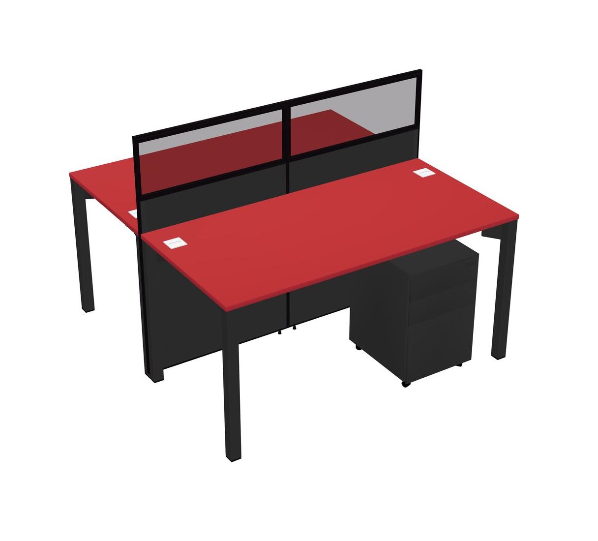 Prism Red Shared Rectangular Office Cubicle Panel System With Mobile Drawers For 2 Persons