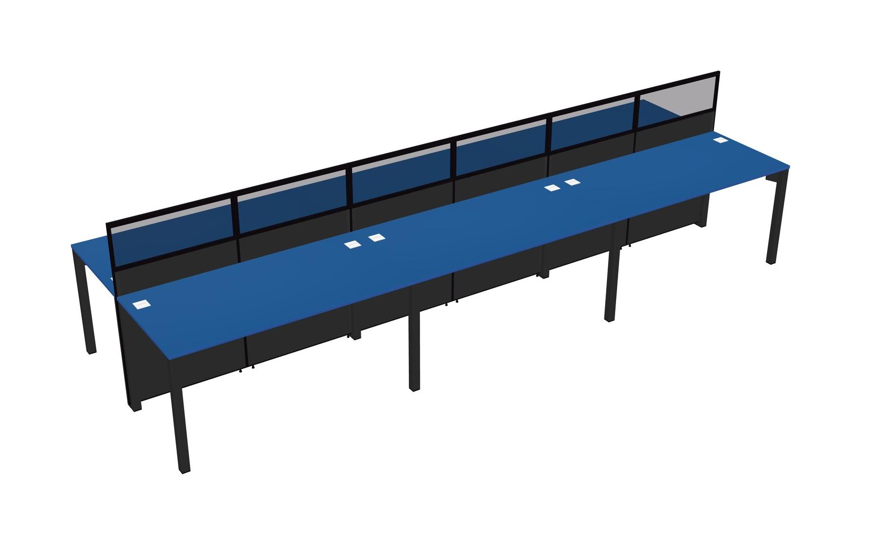 Prism Blue Shared Rectangular Office Cubicle Panel System For 6 Persons