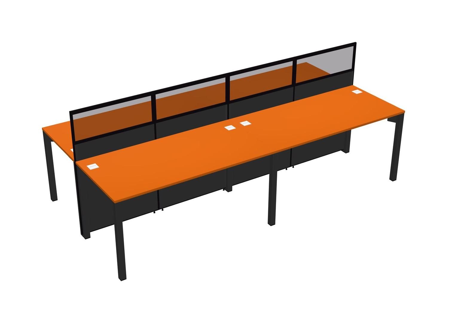 Orange Shared Rectangular Office Cubicle Panel System For 4 Persons