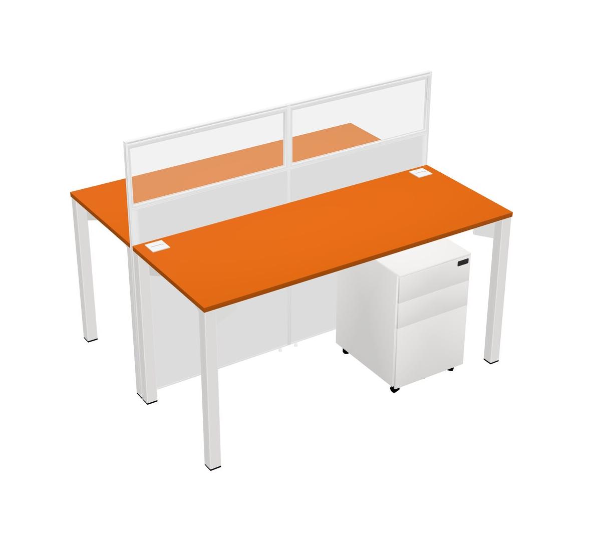 Orange Shared Rectangular Office Cubicle Panel System With Mobile Drawers For 2 Persons