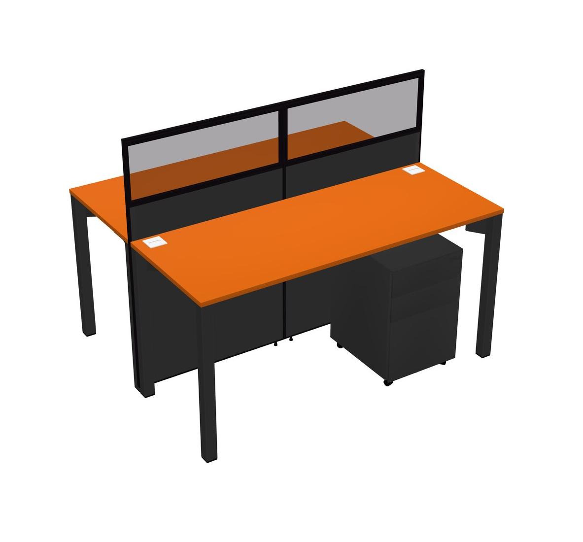 Orange Shared Rectangular Office Cubicle Panel System With Mobile Drawers For 2 Persons