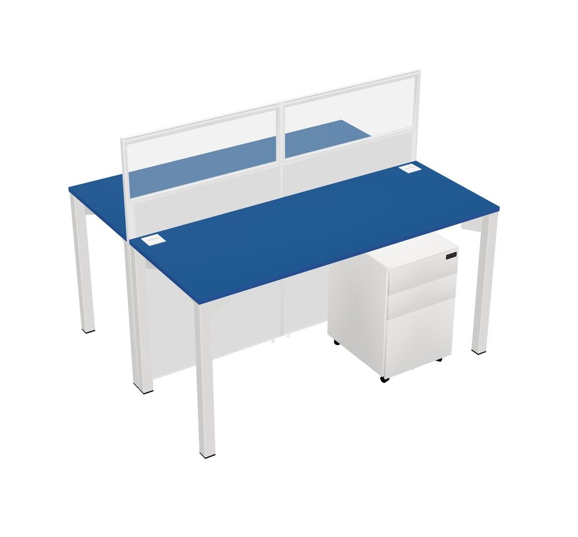 Prism Blue Shared Rectangular Office Cubicle Panel System With Mobile Drawers For 2 Persons