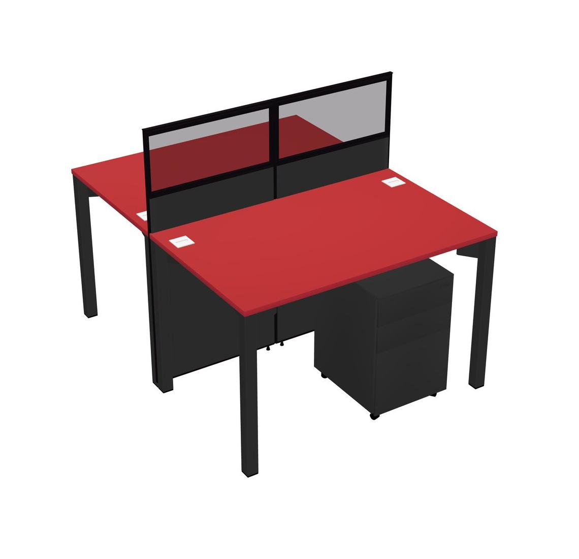 Prism Red Shared Rectangular Office Cubicle Panel System With Mobile Drawers For 2 Persons