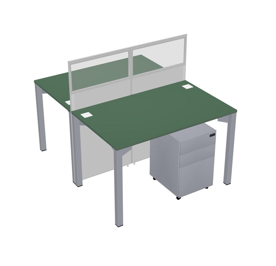Green Shared Rectangular Office Cubicle Panel System With Mobile Drawers For 2 Persons