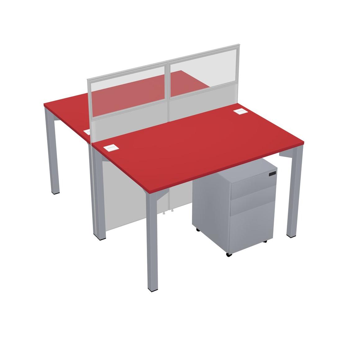 Prism Red Shared Rectangular Office Cubicle Panel System With Mobile Drawers For 2 Persons