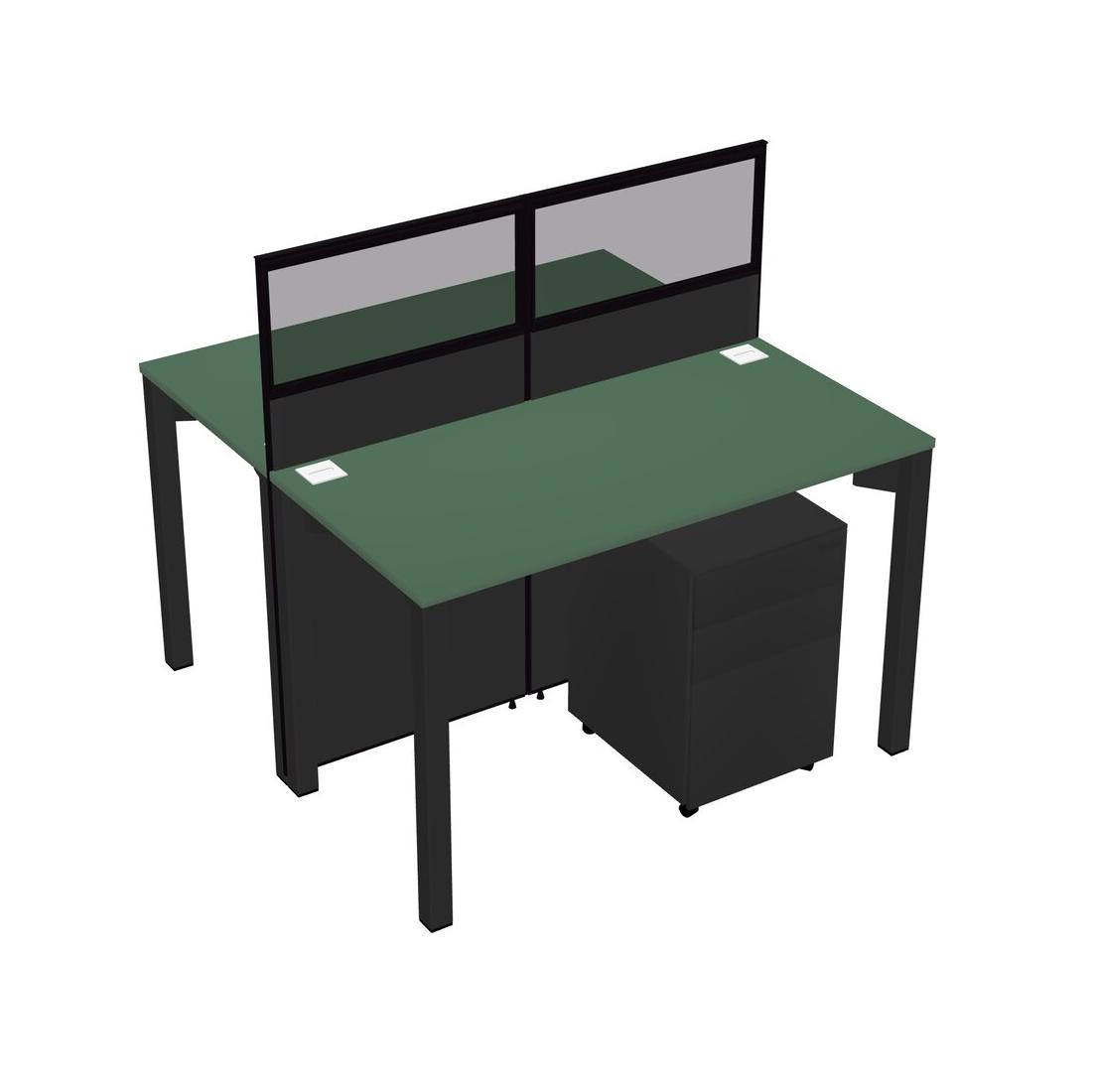 Green Shared Rectangular Office Cubicle Panel System With Mobile Drawers For 2 Persons