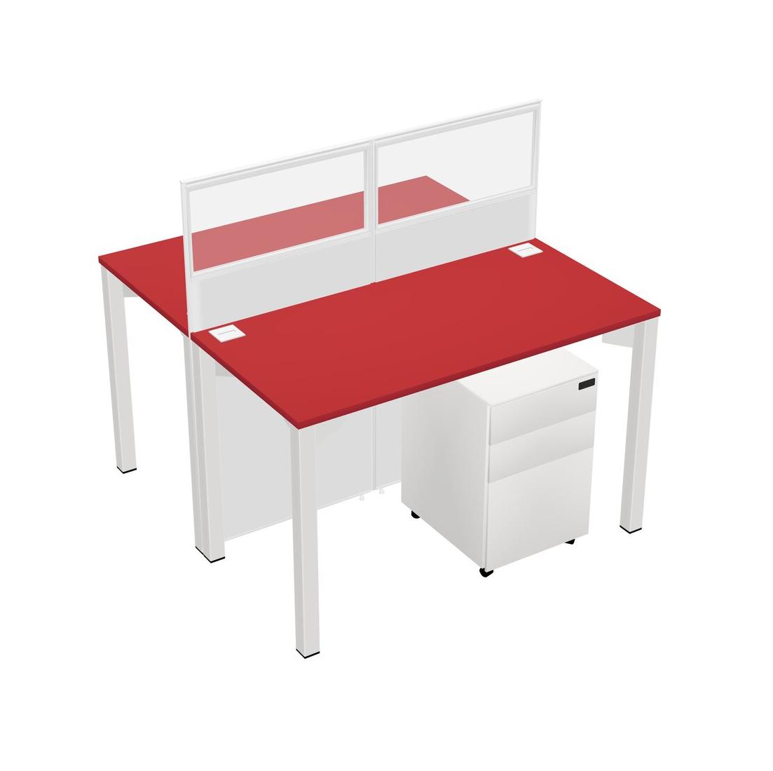Prism Red Shared Rectangular Office Cubicle Panel System With Mobile Drawers For 2 Persons