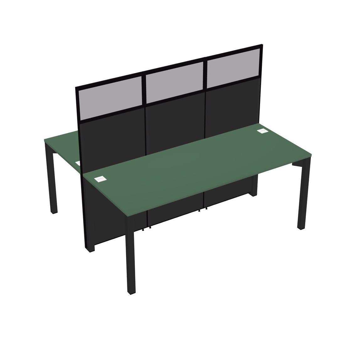 Green Shared Rectangular Office Cubicle Panel System For 2 Persons
