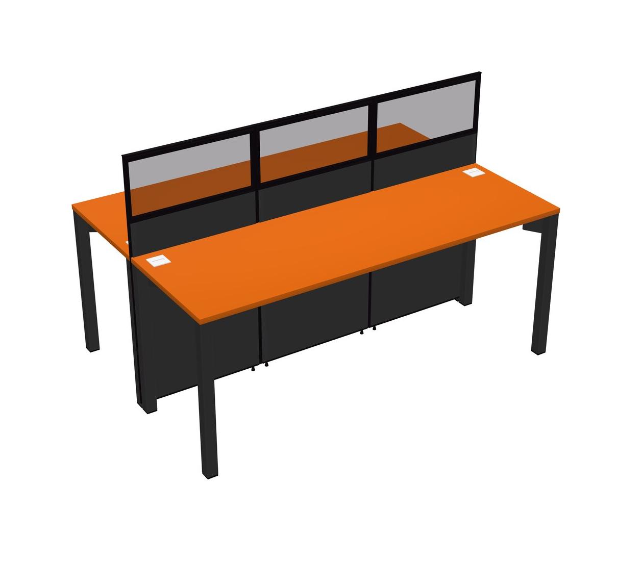 Orange Shared Rectangular Office Cubicle Panel System For 2 Persons