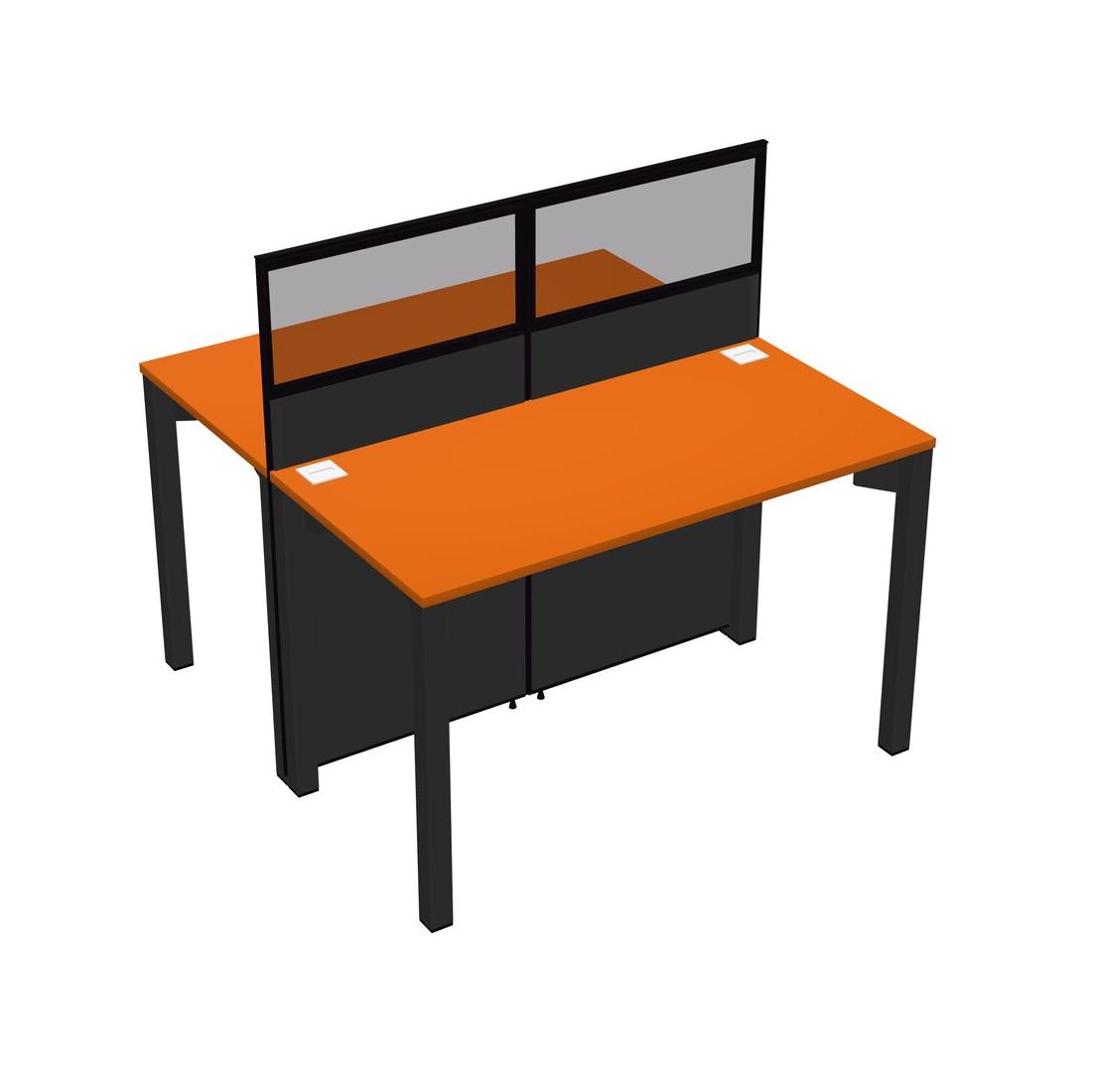 Orange Shared Rectangular Office Cubicle Panel System For 2 Persons