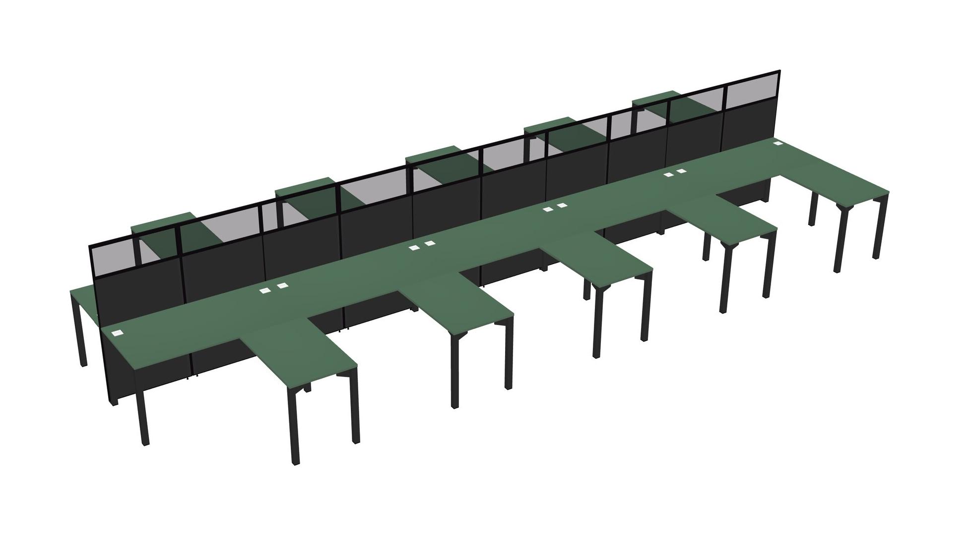 Green Shared L-shape Office Cubicle Panel System For 10 Persons