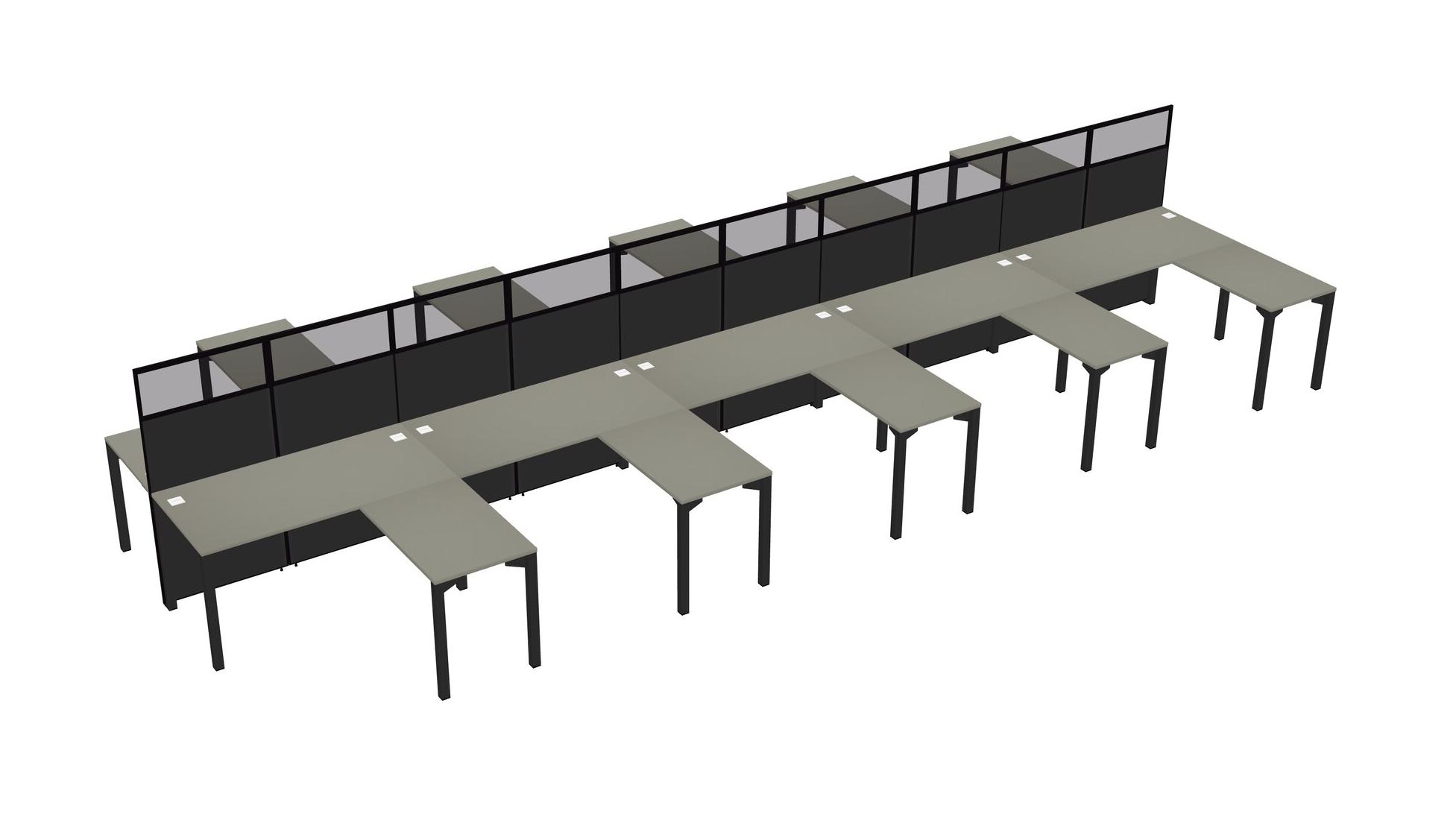 Grey Shadows Shared L-shape Office Cubicle Panel System For 10 Persons