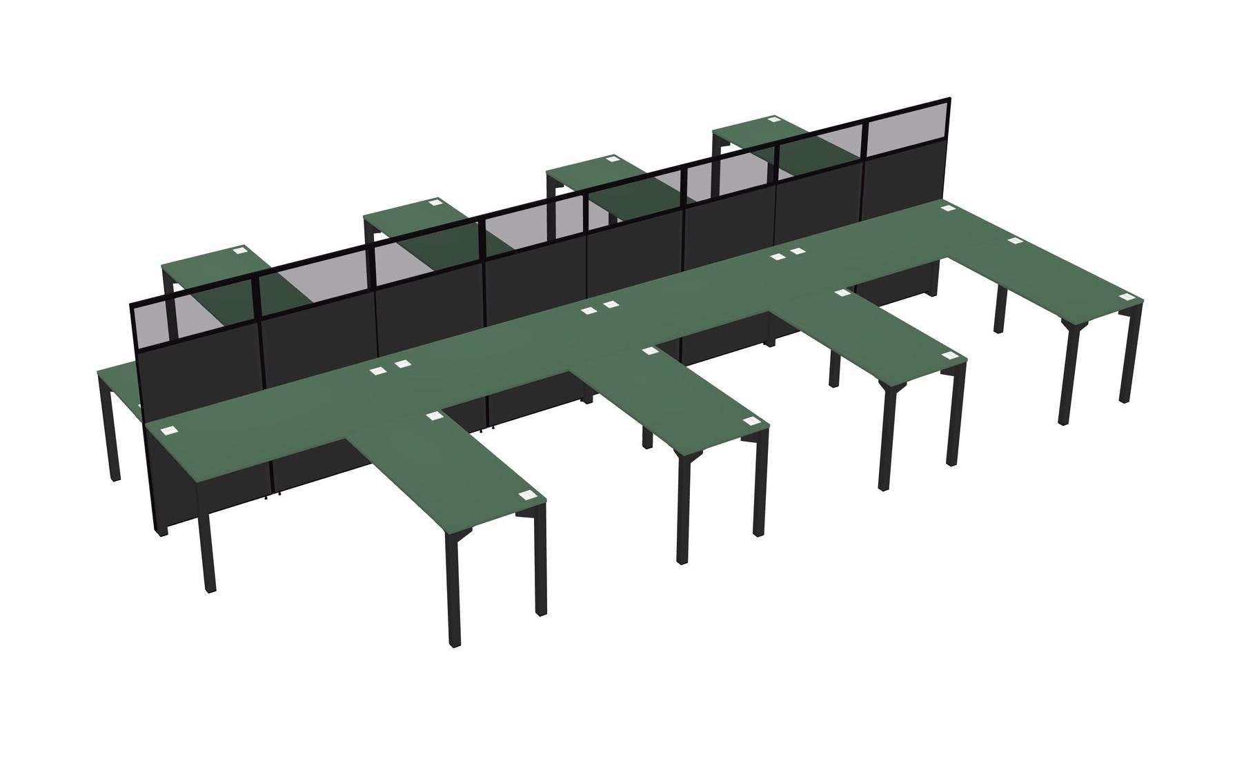 Green Shared L-shape Office Cubicle Panel System For 8 Persons