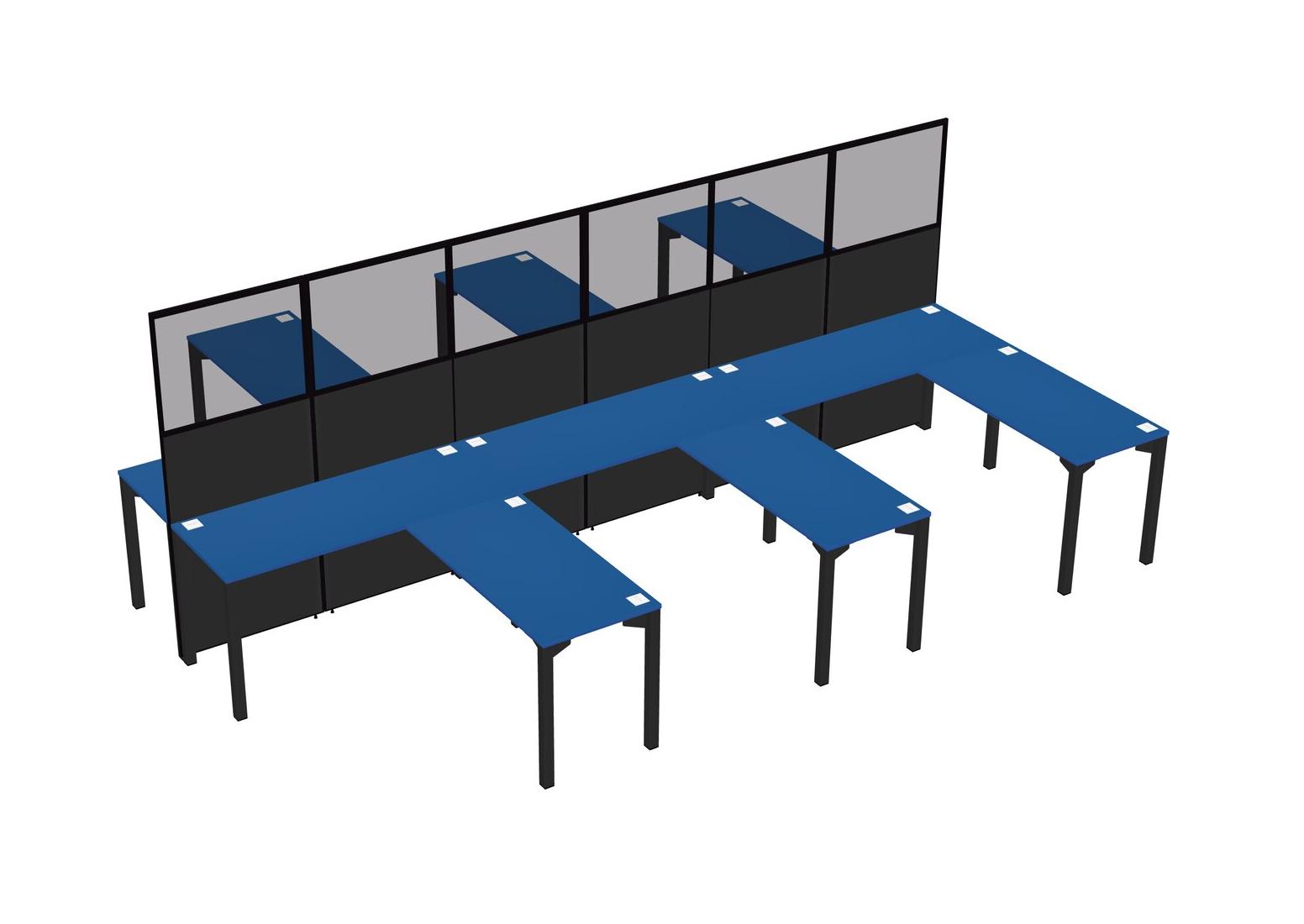 Prism Blue Shared L-shape Office Cubicle Panel System For 6 Persons