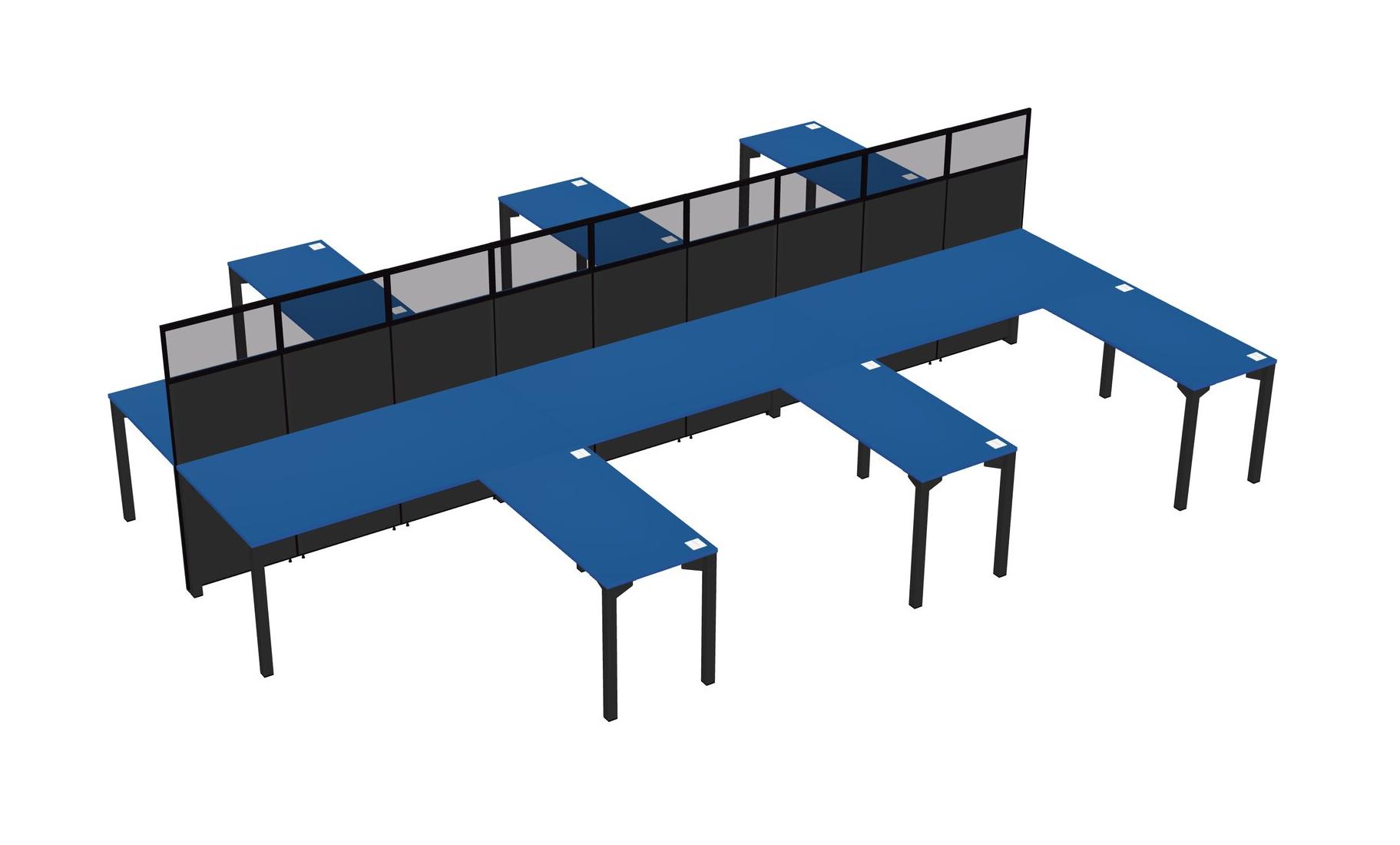 Prism Blue Shared L-shape Office Cubicle Panel System For 6 Persons