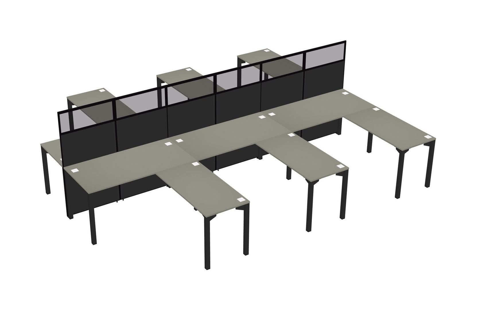 Grey Shadows Shared L-shape Office Cubicle Panel System For 6 Persons