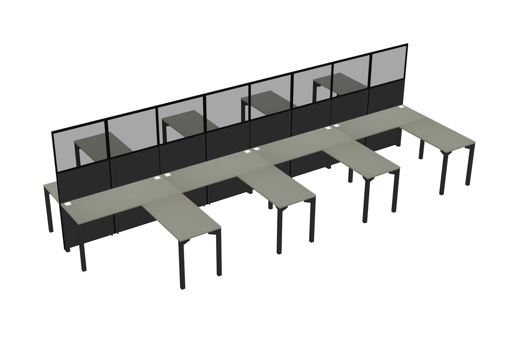Grey Shadows Shared L-shape Office Cubicle Panel System For 8 Persons