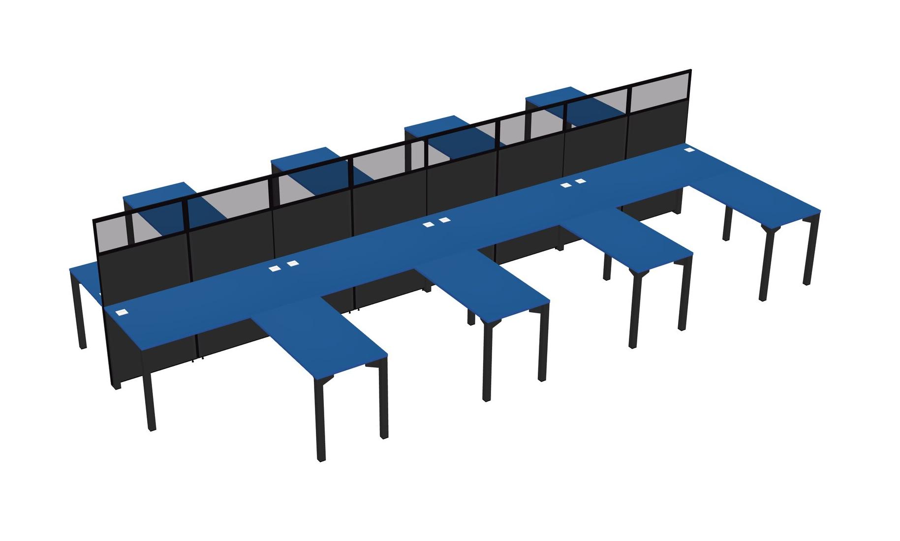 Prism Blue Shared L-shape Office Cubicle Panel System For 8 Persons