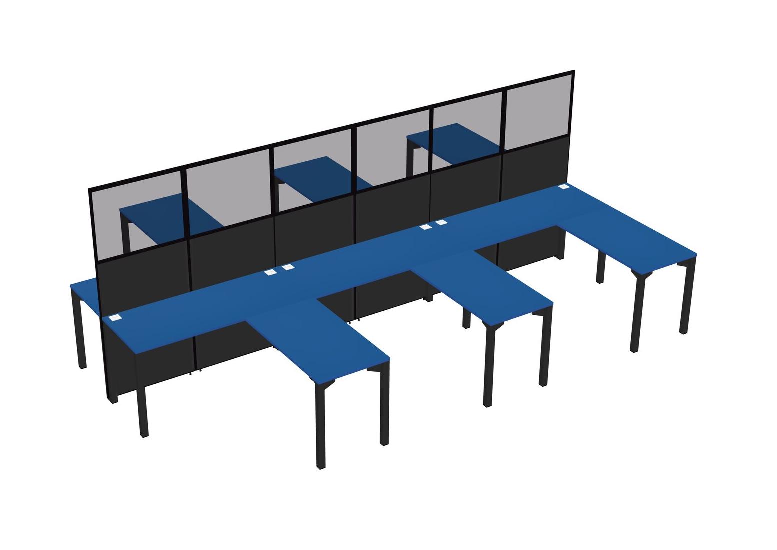 Prism Blue Shared L-shape Office Cubicle Panel System For 6 Persons