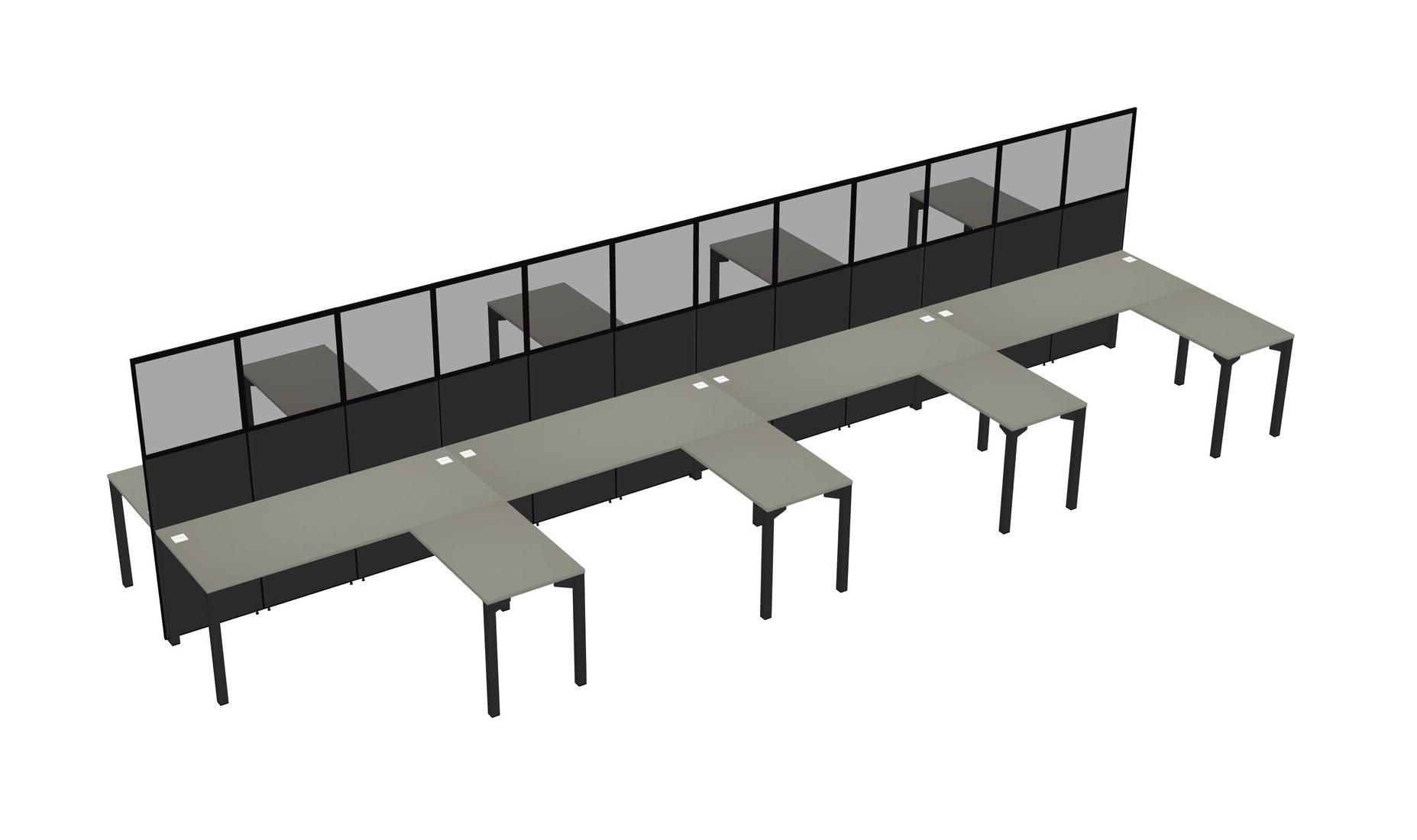 Grey Shadows Shared L-shape Office Cubicle Panel System For 8 Persons