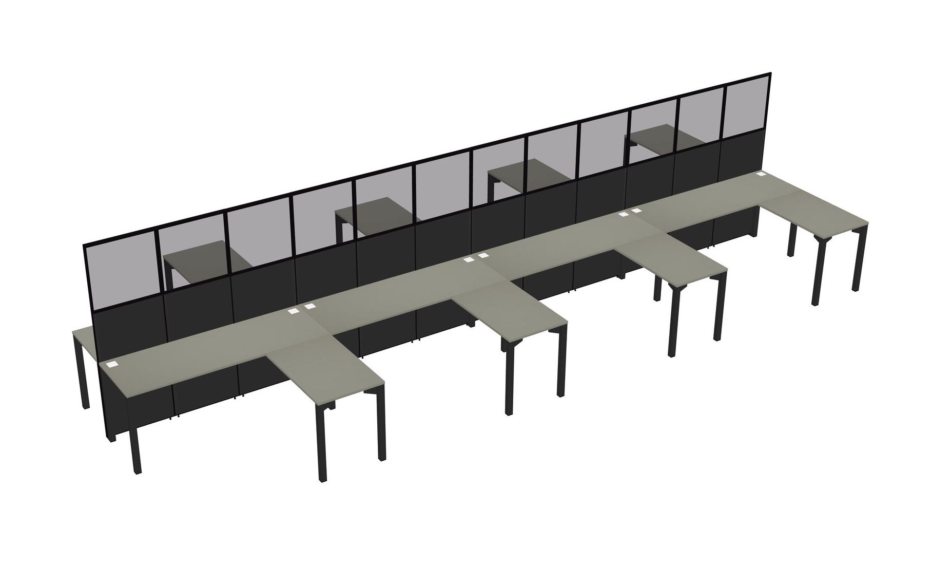 Grey Shadows Shared L-shape Office Cubicle Panel System For 8 Persons