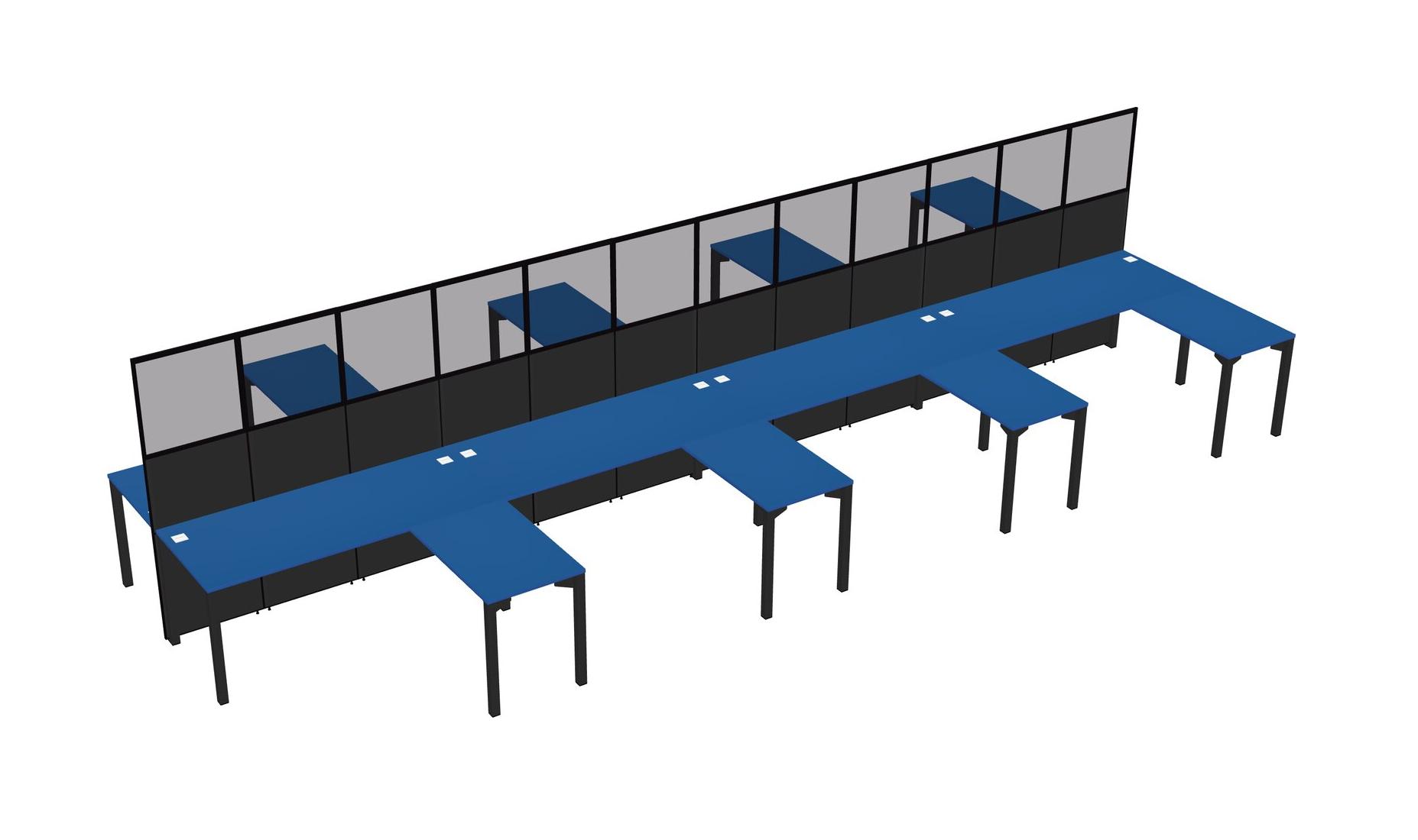 Prism Blue Shared L-shape Office Cubicle Panel System For 8 Persons
