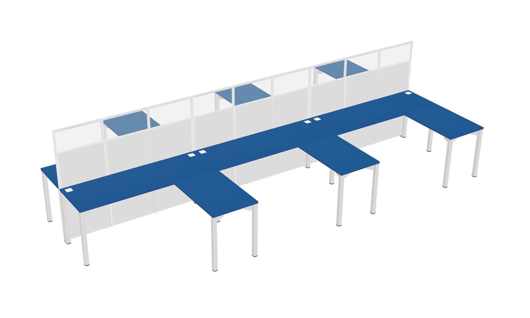 Prism Blue Shared L-shape Office Cubicle Panel System For 6 Persons