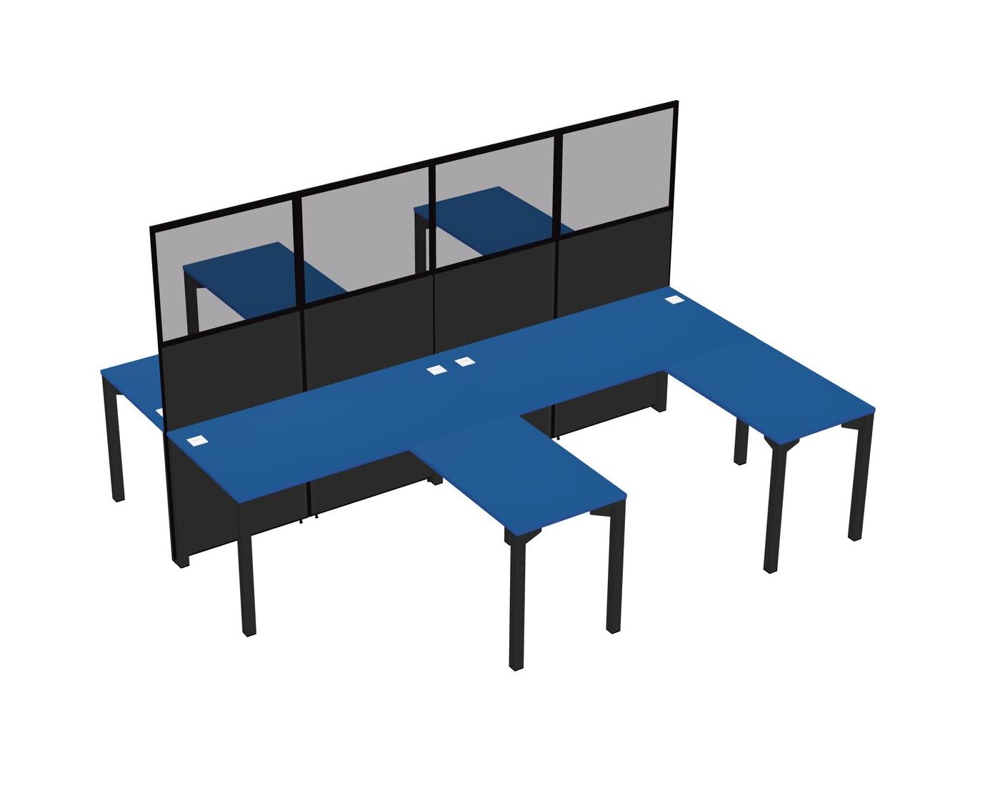 Prism Blue Shared L-shape Office Cubicle Panel System For 4 Persons