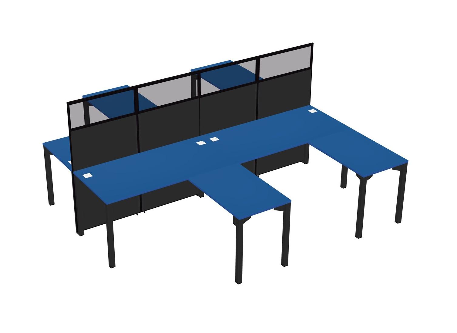 Prism Blue Shared L-shape Office Cubicle Panel System For 4 Persons