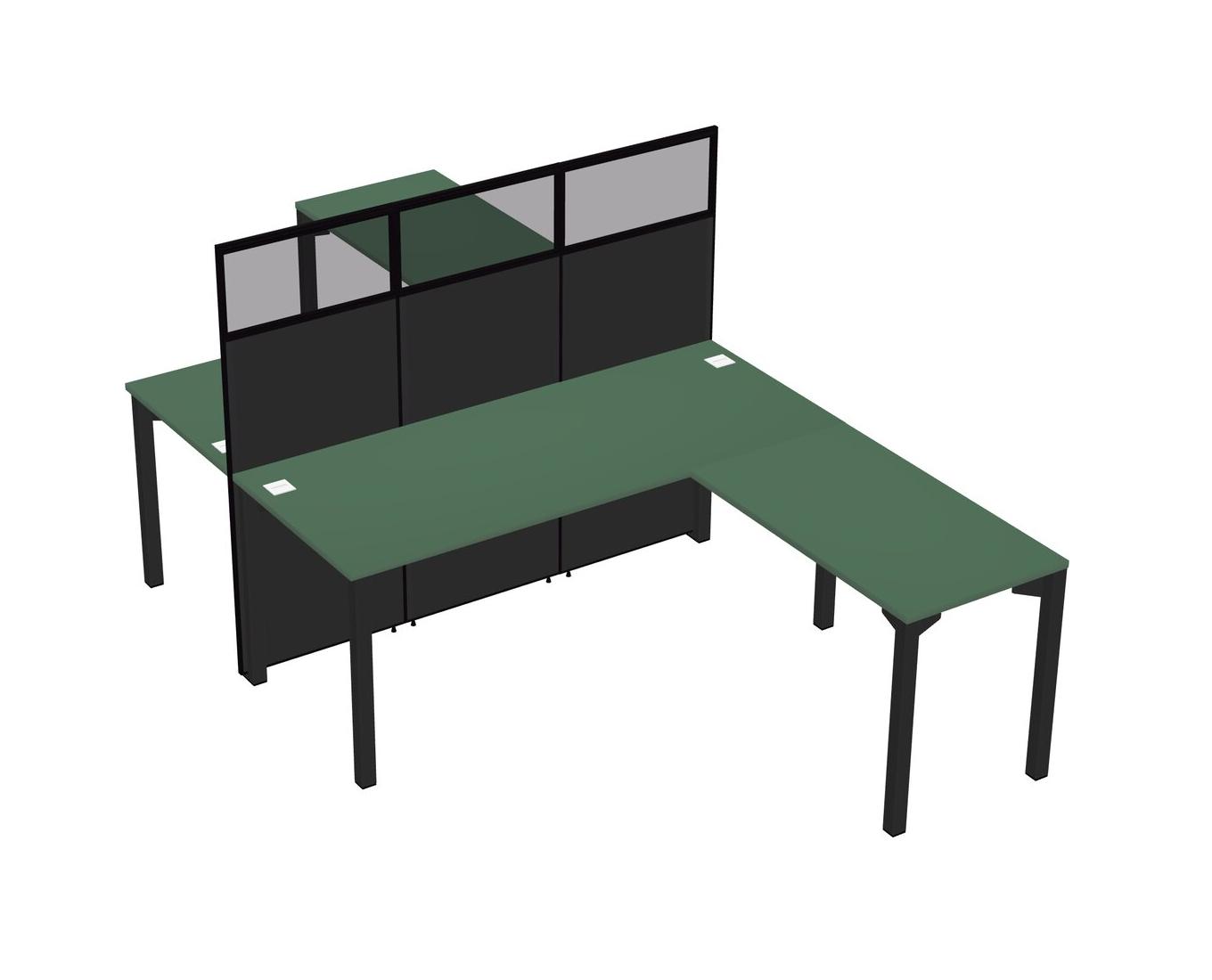 Green Shared L-shape Office Cubicle Panel System For 2 Persons