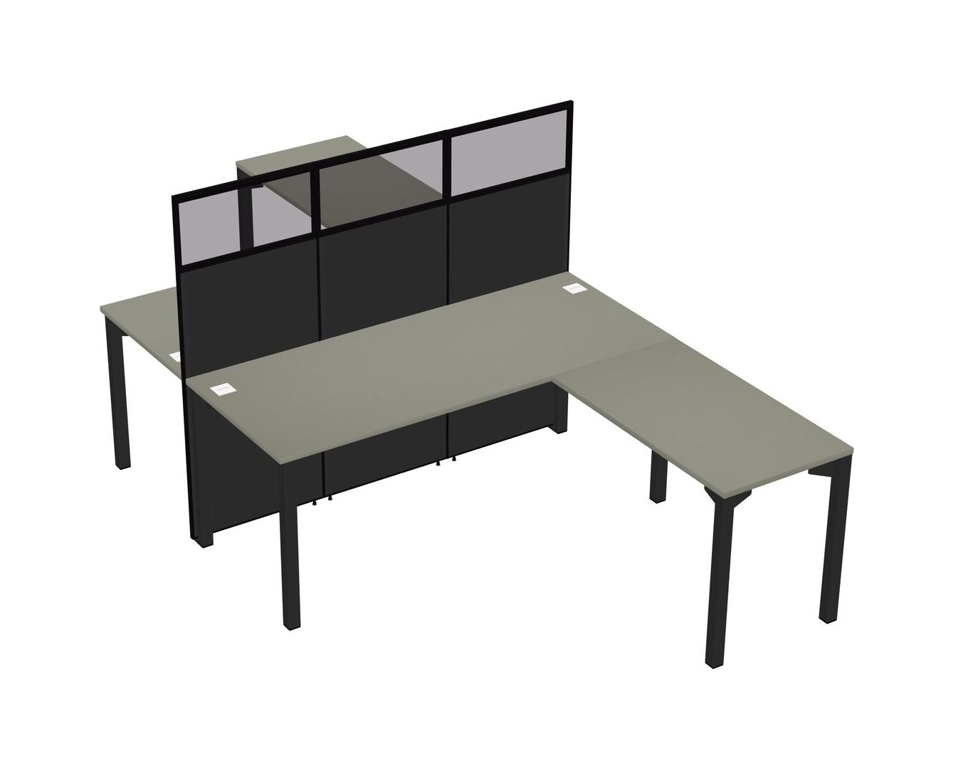 Grey Shadows Shared L-shape Office Cubicle Panel System For 2 Persons