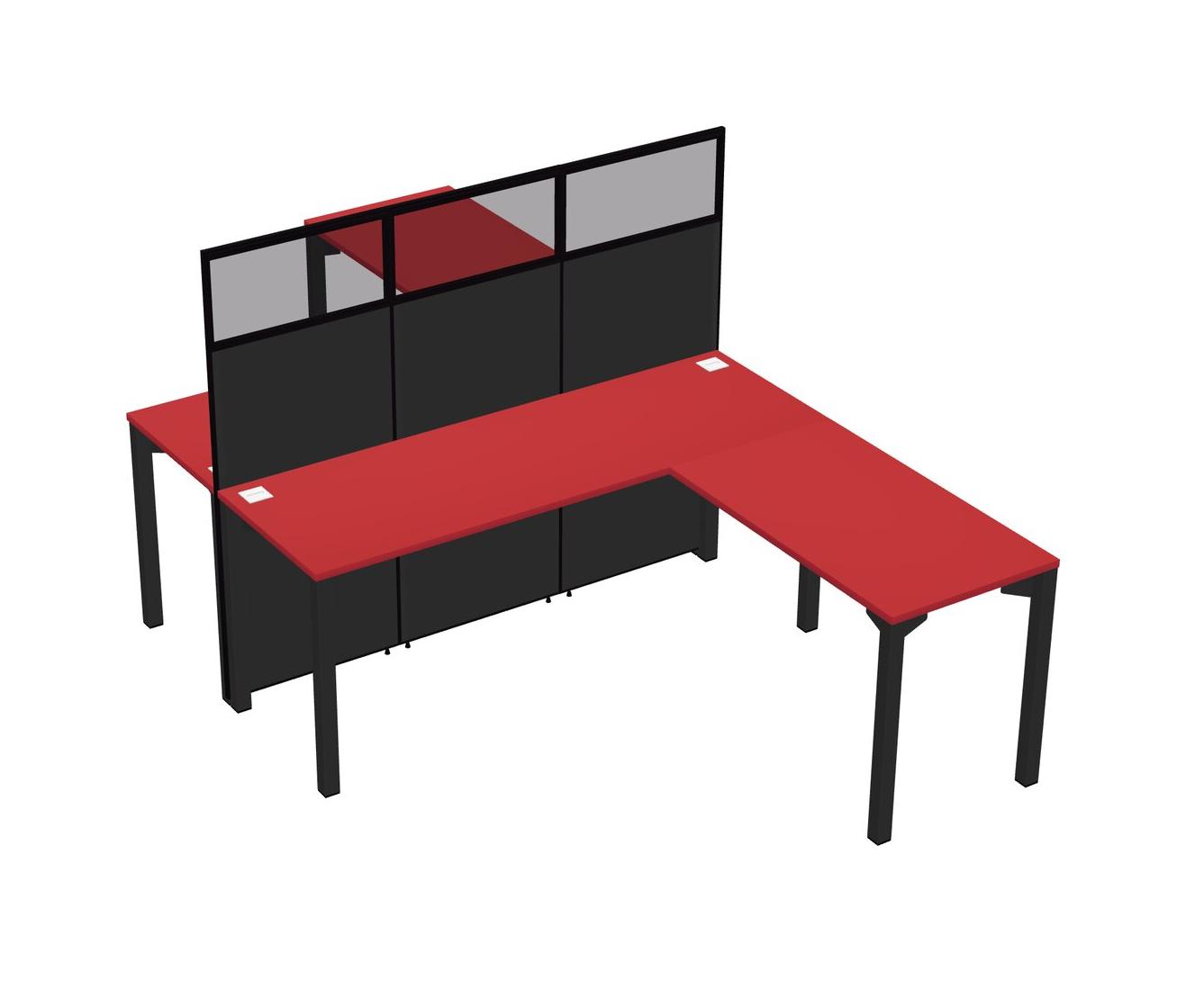 Prism Red Shared L-shape Office Cubicle Panel System For 2 Persons